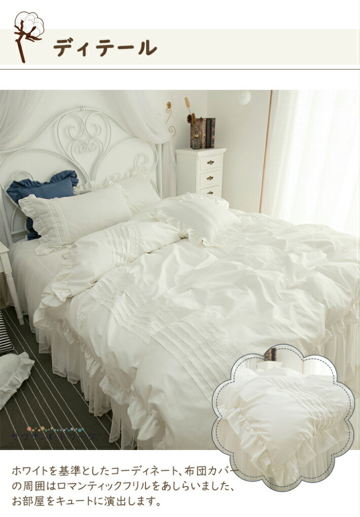 セール お得 布団カバー ベッドスカート 寝具 淑女風 ホワイト 綿100 おしゃれ かわいい 可愛い レース フリル付き ズレ防 人気爆裂大安売り 100 新品 本物保証 アウトドア用品 アウトレット今がお買い得 ぜひお楽しみください セット 布団カバー シングル